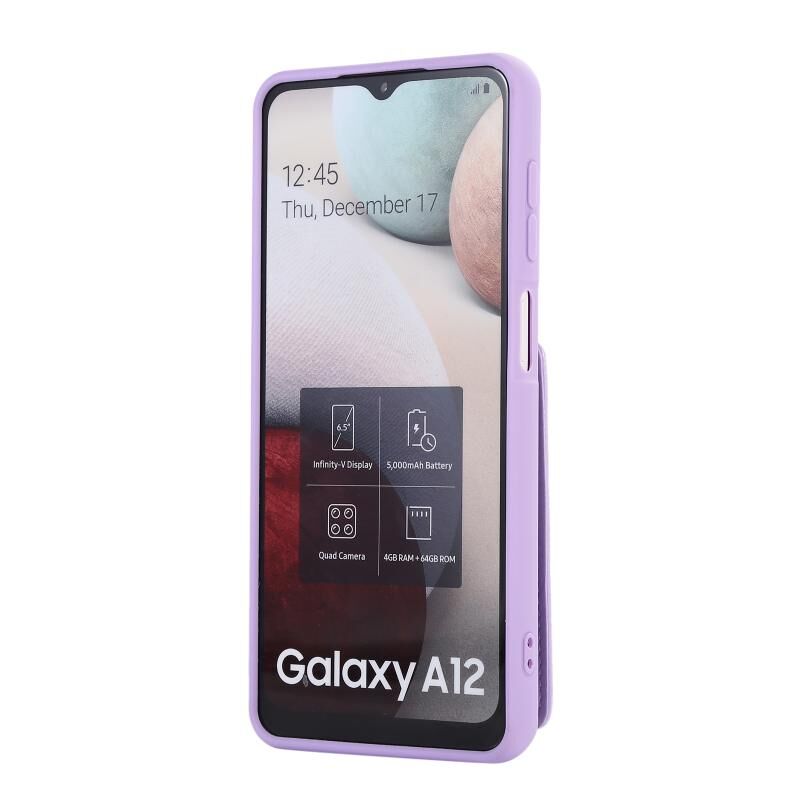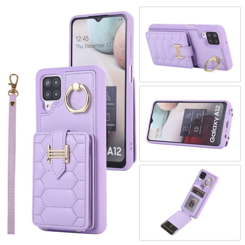 Για Samsung Galaxy A12 5G Κάθετη κάρτα τσάντα δαχτυλίδι τσάντα κάτοχος υπόθεση τηλεφώνου με διπλό κορδόνι (μωβ)