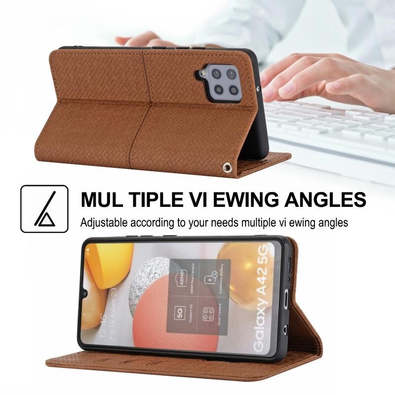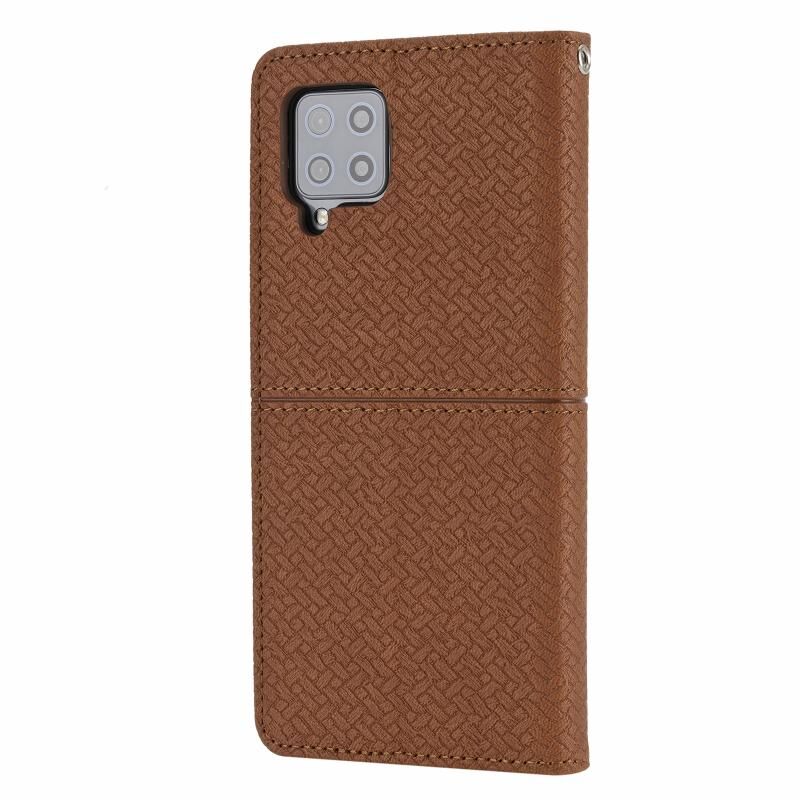 Για Samsung Galaxy A12 5G υφαντή υφή ραφή μαγνητική οριζόντια Flip PU δέρμα υπόθεση με θήκη & υποδοχές για κάρτες & πορτοφόλι & κορδόνι (Καφέ)