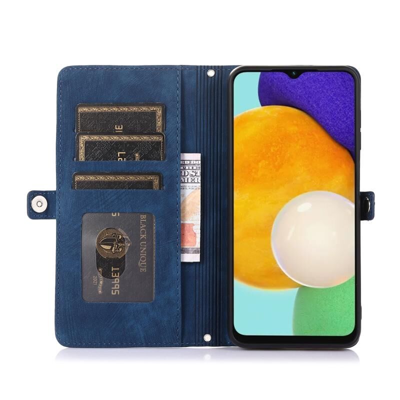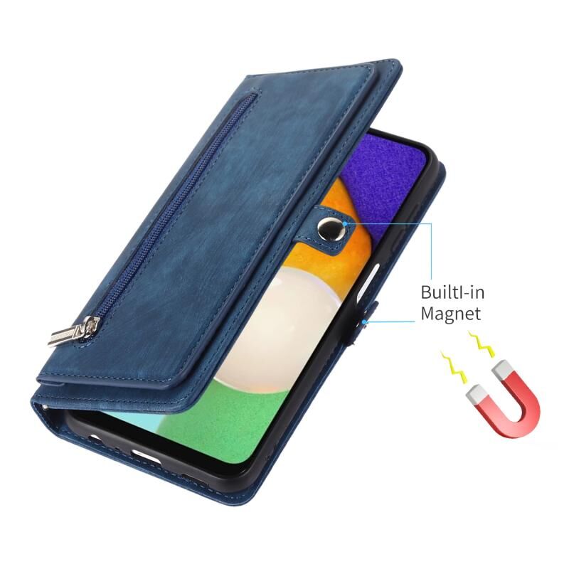 Για Samsung Galaxy A12 5G φερμουάρ κάρτα Slot πόρπη πορτοφόλι δερμάτινη θήκη τηλεφώνου (μπλε)
