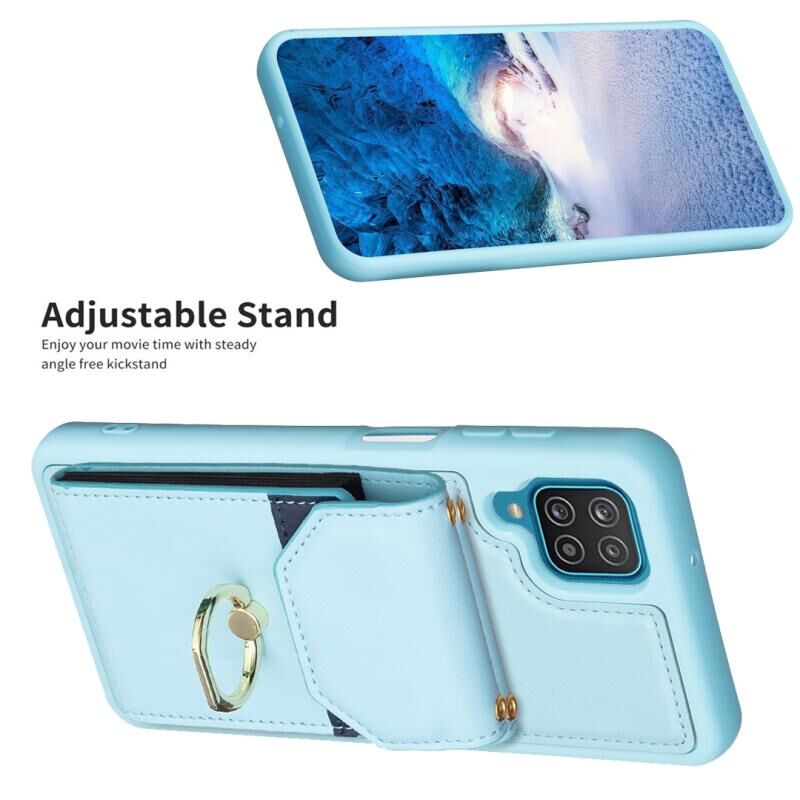 Για Samsung Galaxy A12 BF29 Οργανο κάρτα τσάντα δαχτυλίδι τσάντα κάτοχος υπόθεση τηλεφώνου (Μπλε)