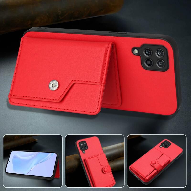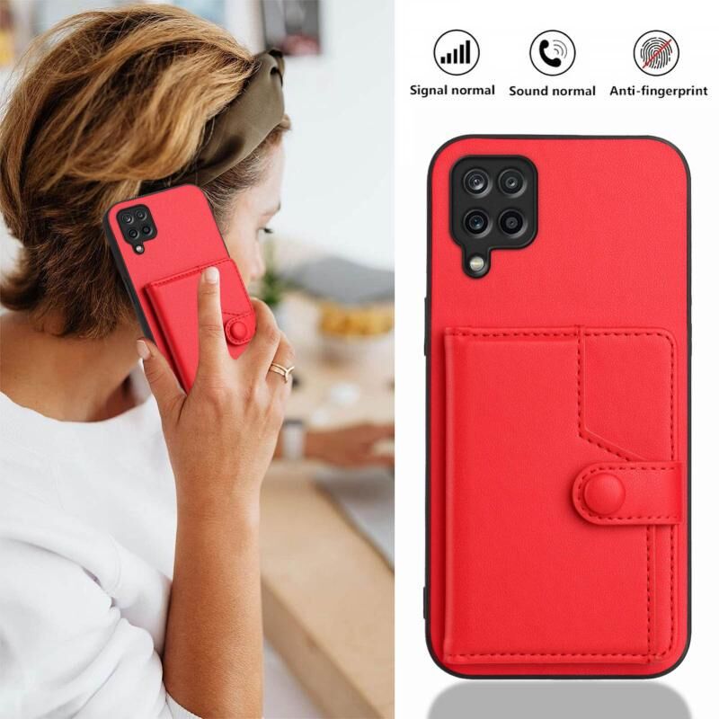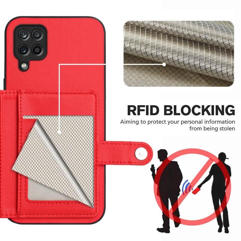 Θήκη κινητού τηλεφώνου με κάρτες και προστασία RFID κατά της κλοπής για Samsung Galaxy A12 (Κόκκινο)