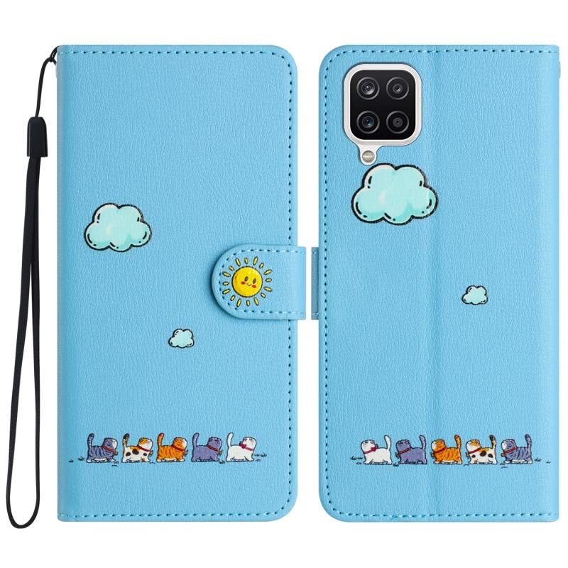 Θήκη τηλεφώνου Samsung Galaxy A12 από δέρμα με σχέδια γάτας (Κόκκινο)
