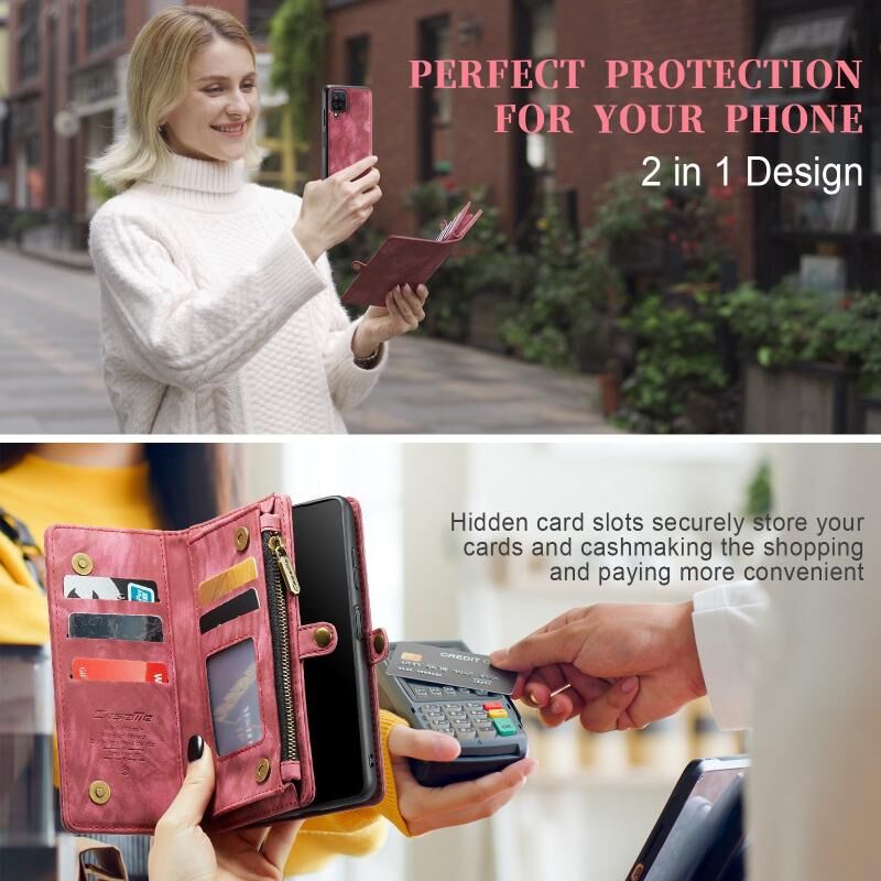 Θήκη CaseMe αποσπώμενη πολυλειτουργική οριζόντια δερμάτινη θήκη για Samsung Galaxy A12, με θήκη για κάρτες & στήριξη & πορτοφόλι με φερμουάρ & κορνίζα φωτογραφιών (Μαύρο) (CaseMe)