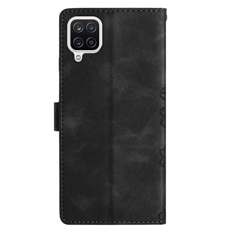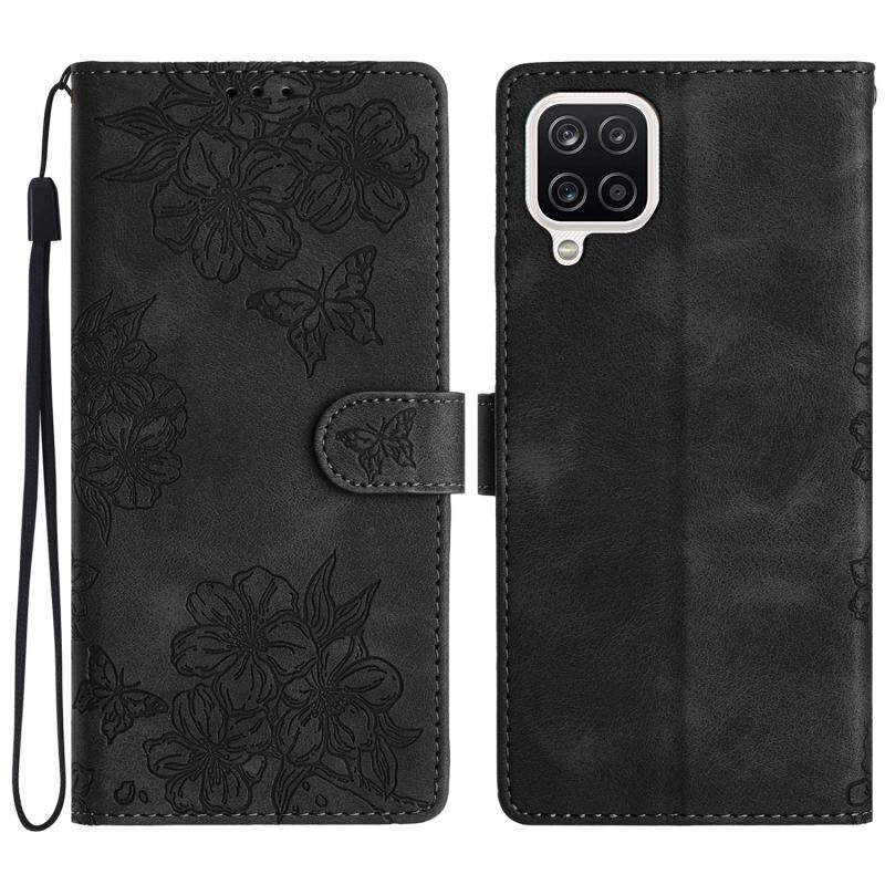 Θήκη κινητού τηλεφώνου Samsung Galaxy A12 Cherry Blossom Butterfly με ανάγλυφη υφή PU (Μωβ)