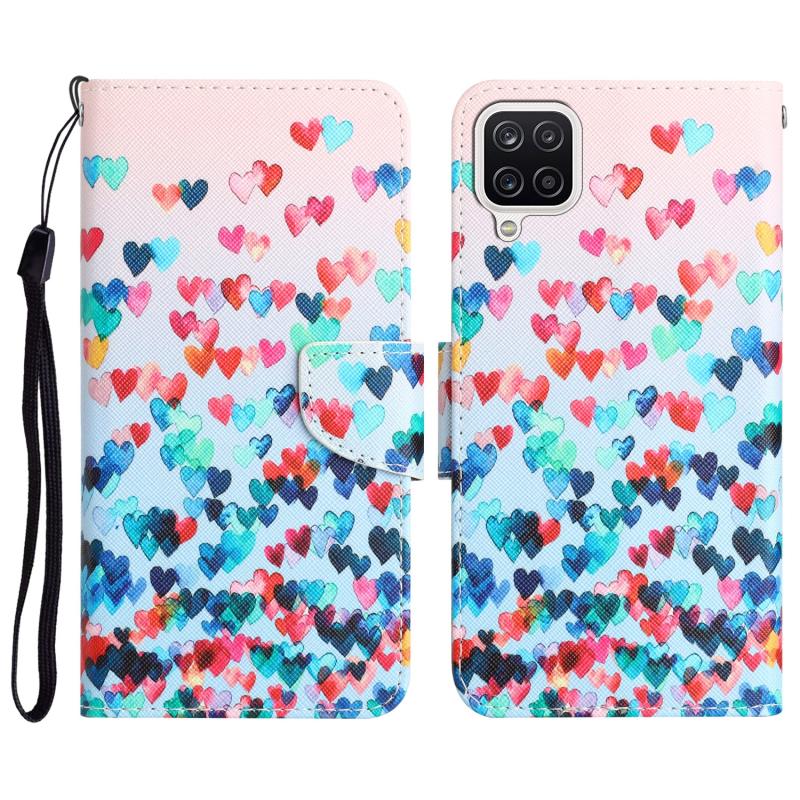 For Samsung Galaxy A12 Colored Drawing Leather Phone Case(Heart)