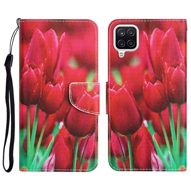 Θήκη τηλεφώνου Samsung Galaxy A12 με σχέδιο πολύχρωμων λουλουδιών (Τουλίπες) από δέρμα.