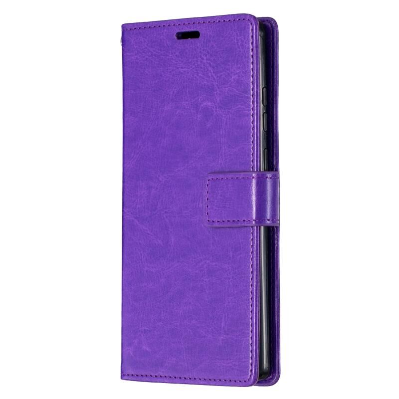 Για Samsung Galaxy A12 Crazy Horse Υφή οριζόντια Flip δερμάτινη θήκη με θήκη & υποδοχές για κάρτες & πορτοφόλι & κορνίζα φωτογραφιών (μωβ)