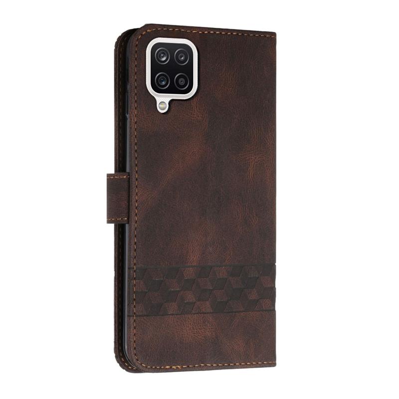 Θήκη τηλεφώνου Samsung Galaxy A12 Cubic Skin Feel Flip από δέρμα (Σκούρο καφέ)