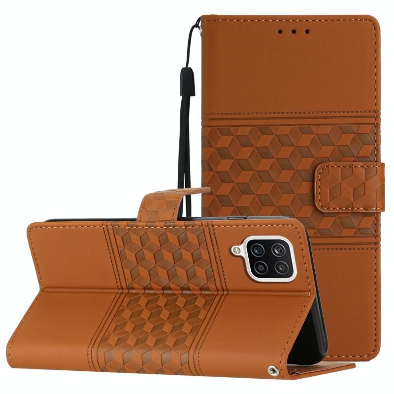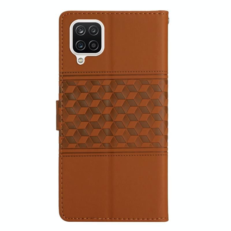 Για Samsung Galaxy A12 Diamond ανάγλυφο δέρμα αίσθηση δέρμα υπόθεση τηλεφώνου με κορδόνι (καφέ)