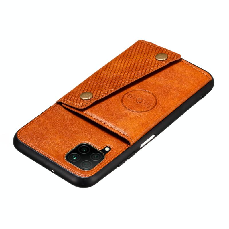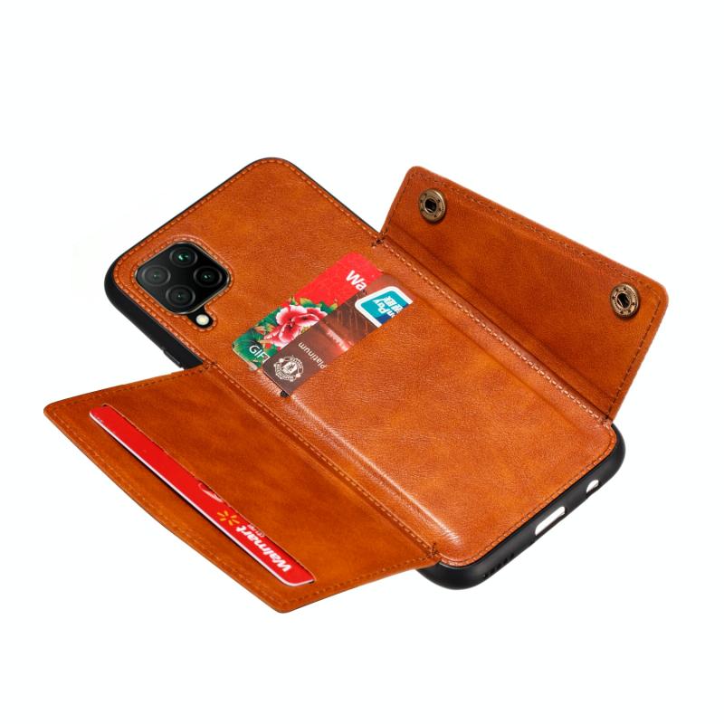 Θήκη προστασίας Samsung Galaxy A12 με διπλή αγκράφα από PU + TPU, ανθεκτική σε κρούσεις, μαγνητική με υποδοχή κάρτας & βάση (Μαύρο)