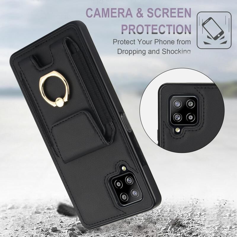 Για Samsung Galaxy A12 Ελαστική τσάντα κάρτα δαχτυλίδι τσάντα κάτοχος υπόθεση τηλεφώνου (Μαύρο)