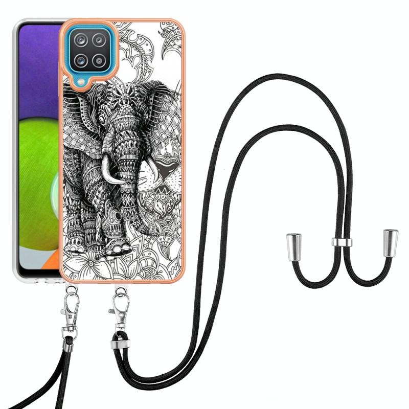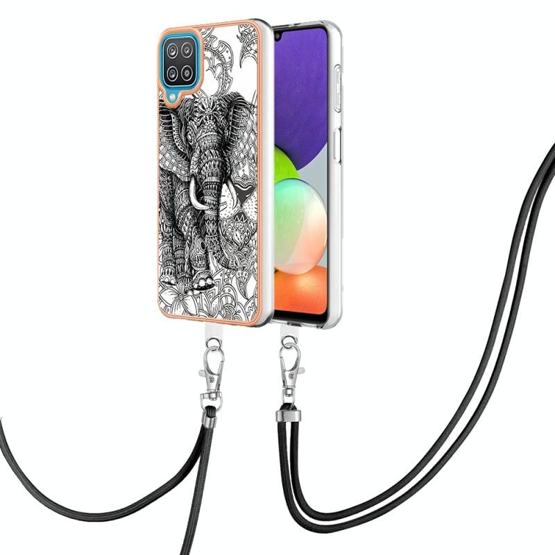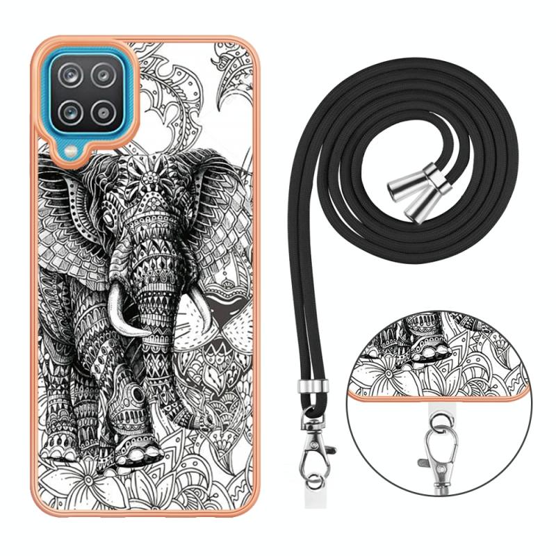 For Samsung Galaxy A12 Electroplating Dual-side IMD Phone Case with Lanyard(Totem Elephant)