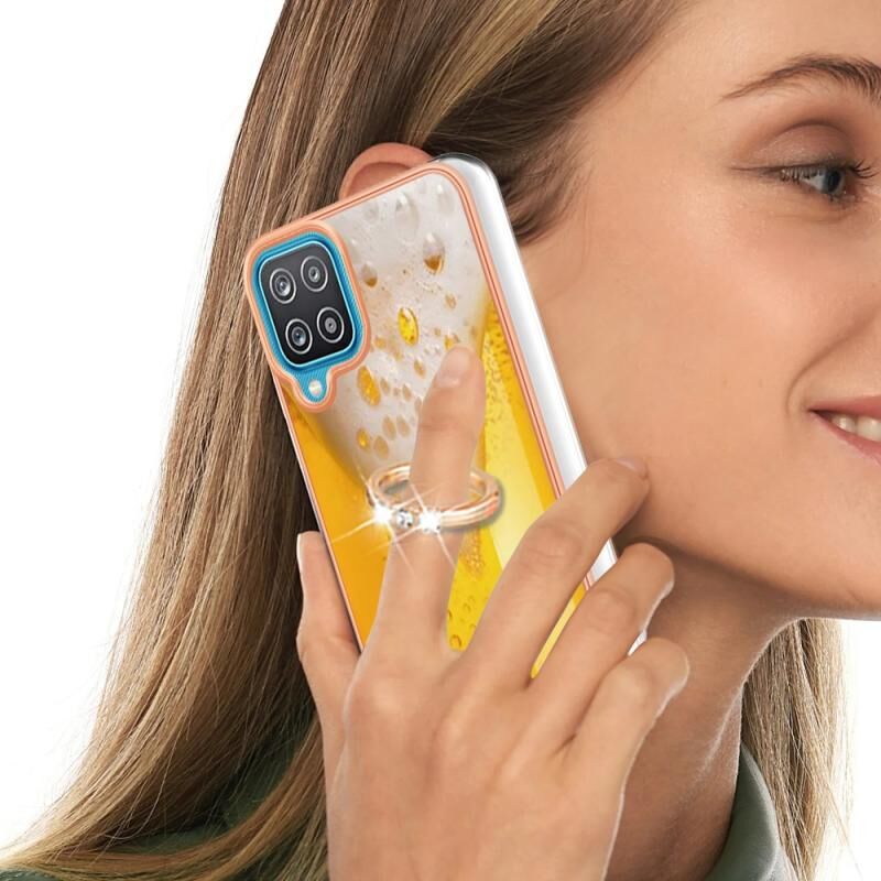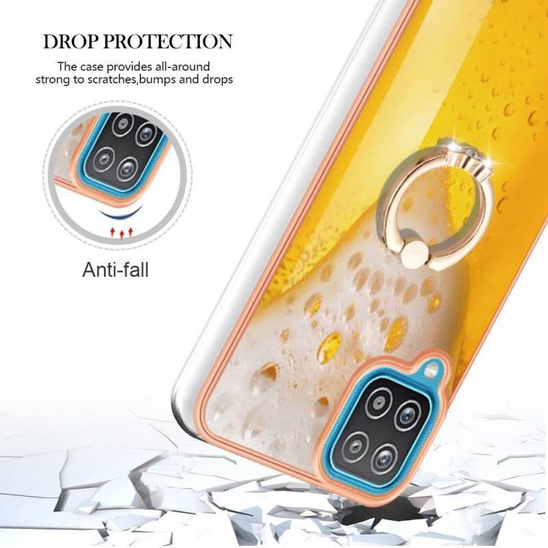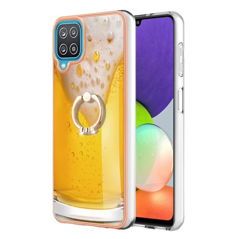 Θήκη τηλεφώνου για Samsung Galaxy A12 με ηλεκτρολυτική επιμετάλλωση, διπλής όψης IMD με δακτύλιο στήριξης (Σχέδιο Μπύρας)