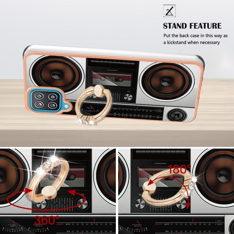 Θήκη τηλεφώνου για Samsung Galaxy A12 με ηλεκτρολυτική επιμετάλλωση, διπλής όψης IMD με δακτύλιο στήριξης (Ρετρό Ραδιόφωνο)
