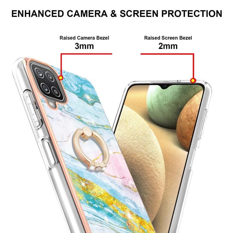 Θήκη για Samsung Galaxy A12 με Επικάλυψη Ηλεκτρολυτικής Μαρμάρου, IMD, TPU, Αντικραδασμική με Δακτύλιο Στήριξης (Μωβ 002)