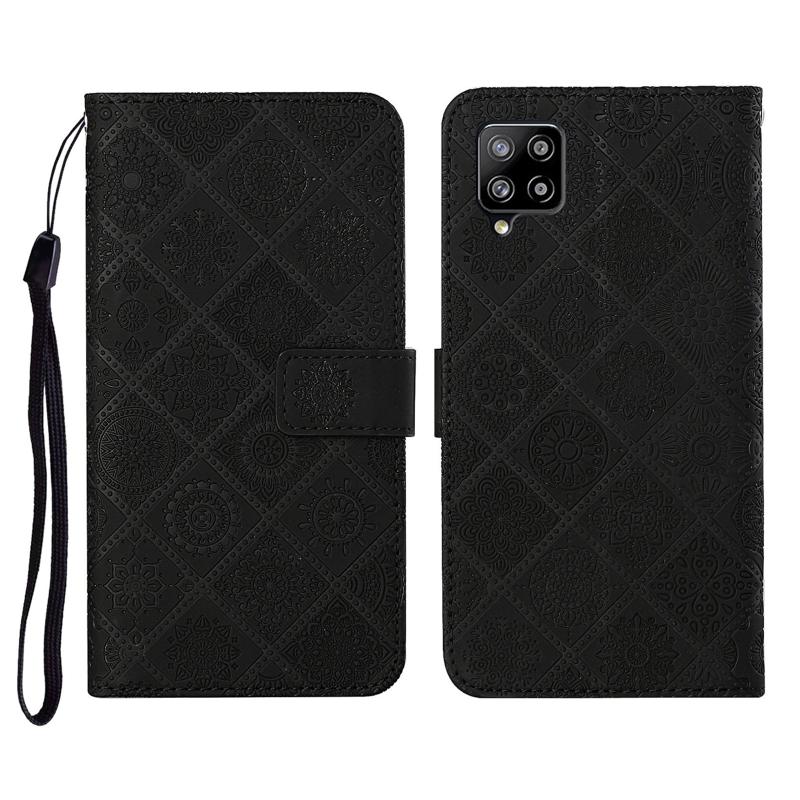 Θήκη Samsung Galaxy A12 Εθνοτικό Στυλ, ανάγλυφο σχέδιο, οριζόντια, δερμάτινη με βάση & θήκες καρτών & πορτοφόλι & κορδόνι (Λευκό)