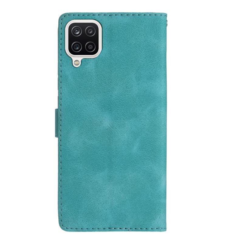 Για Samsung Galaxy A12 λουλούδι πεταλούδα ανάγλυφο μοτίβο δερμάτινη θήκη τηλεφώνου (Sky Blue)