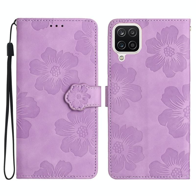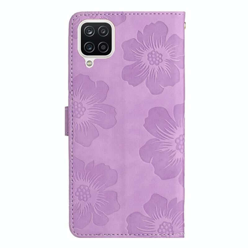 Για Samsung Galaxy A12 λουλούδι ανάγλυφο μοτίβο δερμάτινη θήκη τηλεφώνου (μωβ)