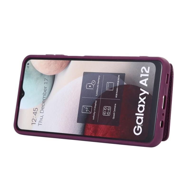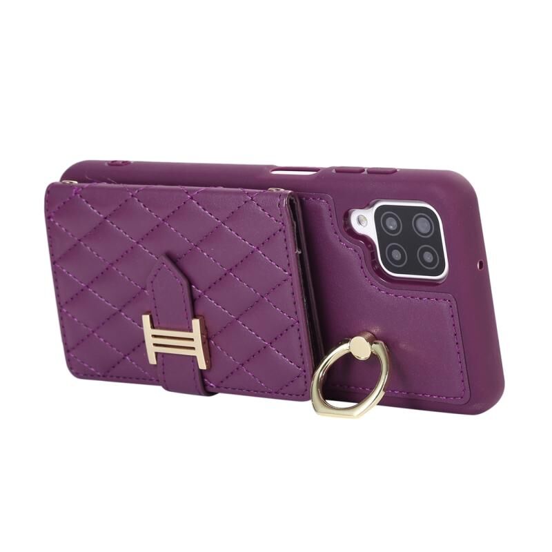 Για Samsung Galaxy A12 Οριζόντια κάρτα τσάντα δαχτυλίδι τσάντα κάτοχος υπόθεση τηλεφώνου με διπλό κορδόνι (Σκούρο μωβ)