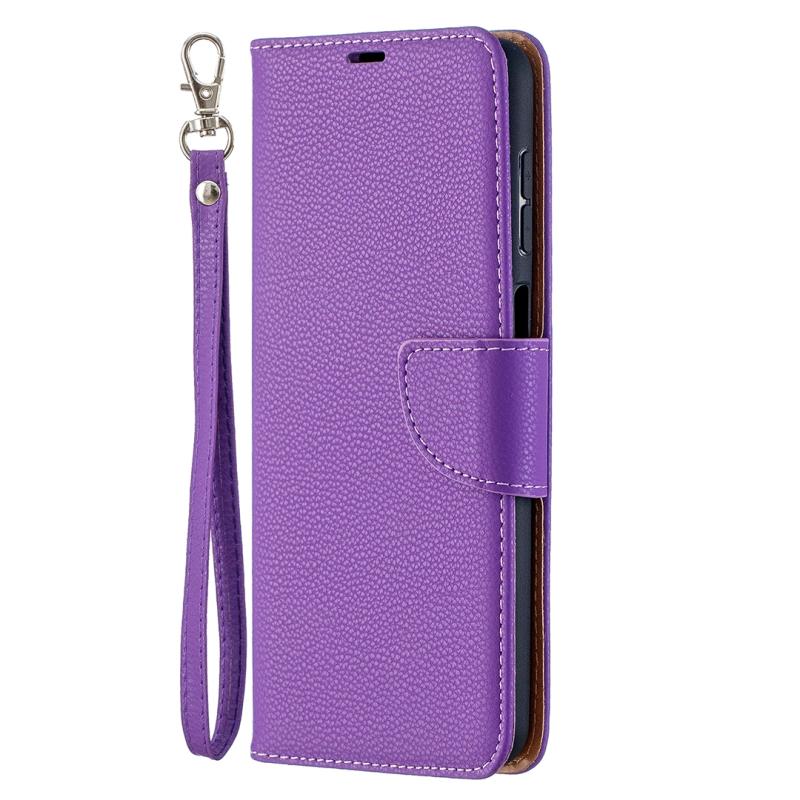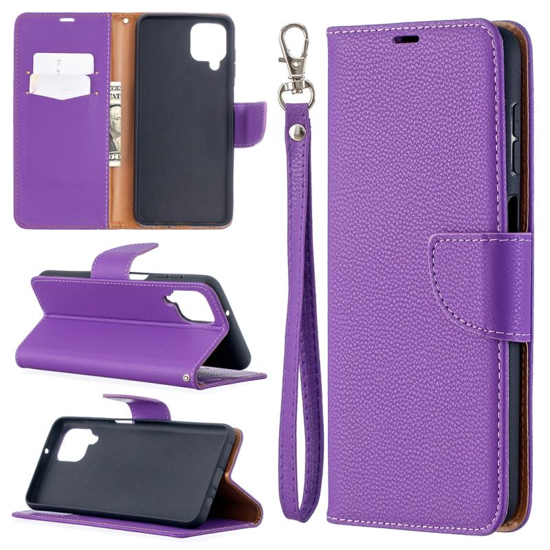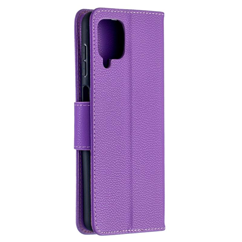 Θήκη Samsung Galaxy A12 με υφή Litchi, απλό χρώμα, οριζόντια αναδιπλούμενη από δερματίνη PU με βάση στήριξης, θήκες για κάρτες, πορτοφόλι & κορδόνι (Χρυσό Ρόδι)