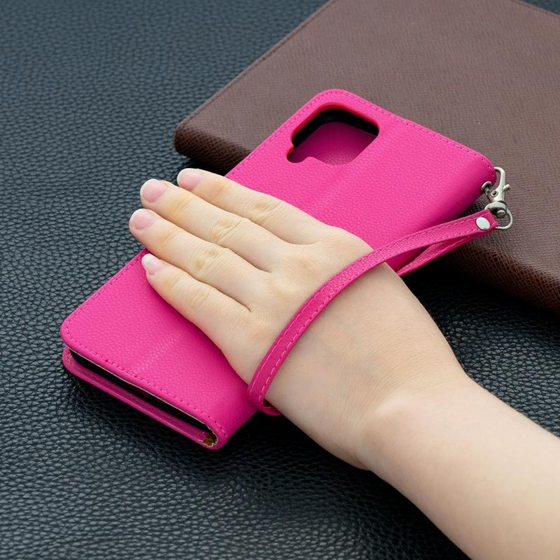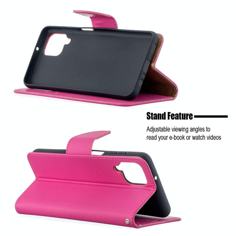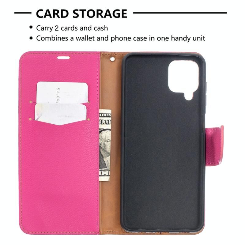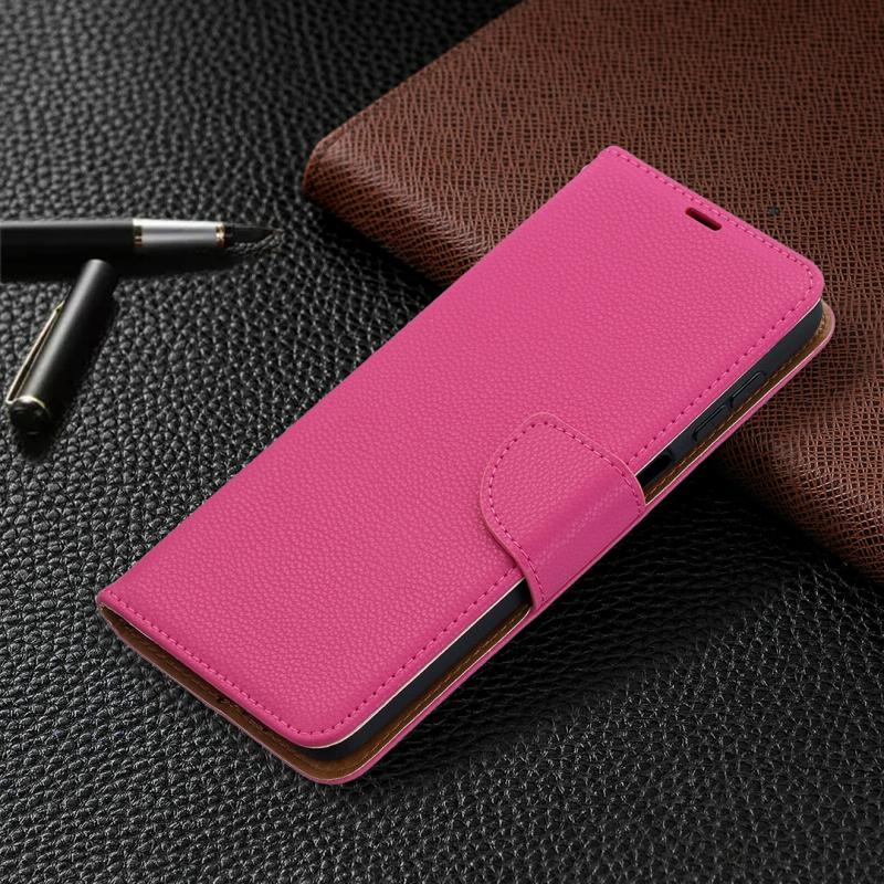 For Samsung Galaxy A12 Litchi Texture Pure Color Horizontal Flip PU Leather Case with Holder & Card Slots & Wallet & Lanyard(Rose Red)