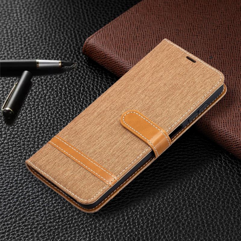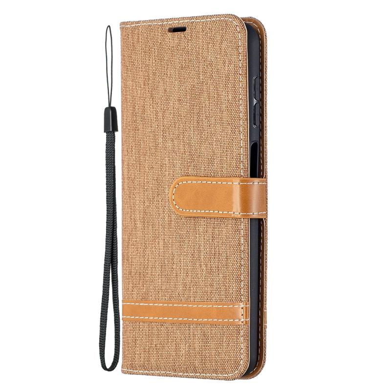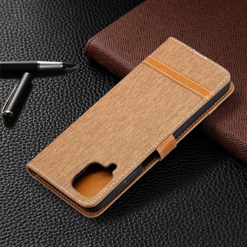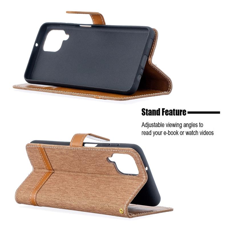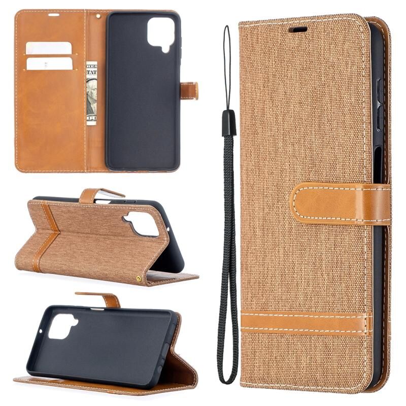 For Samsung Galaxy A12 Lite Color Matching Denim Texture Horizontal Flip Leather Case with Holder & Card Slots & Wallet & Lanyard(Brown)