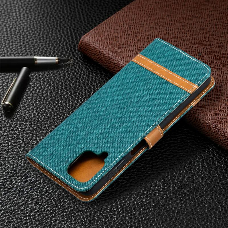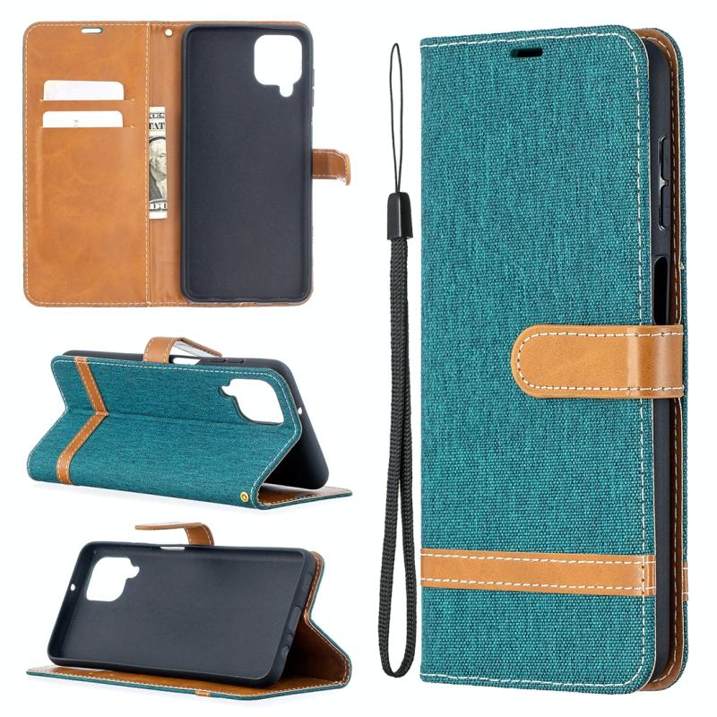 For Samsung Galaxy A12 Lite Color Matching Denim Texture Horizontal Flip Leather Case with Holder & Card Slots & Wallet & Lanyard(Green)