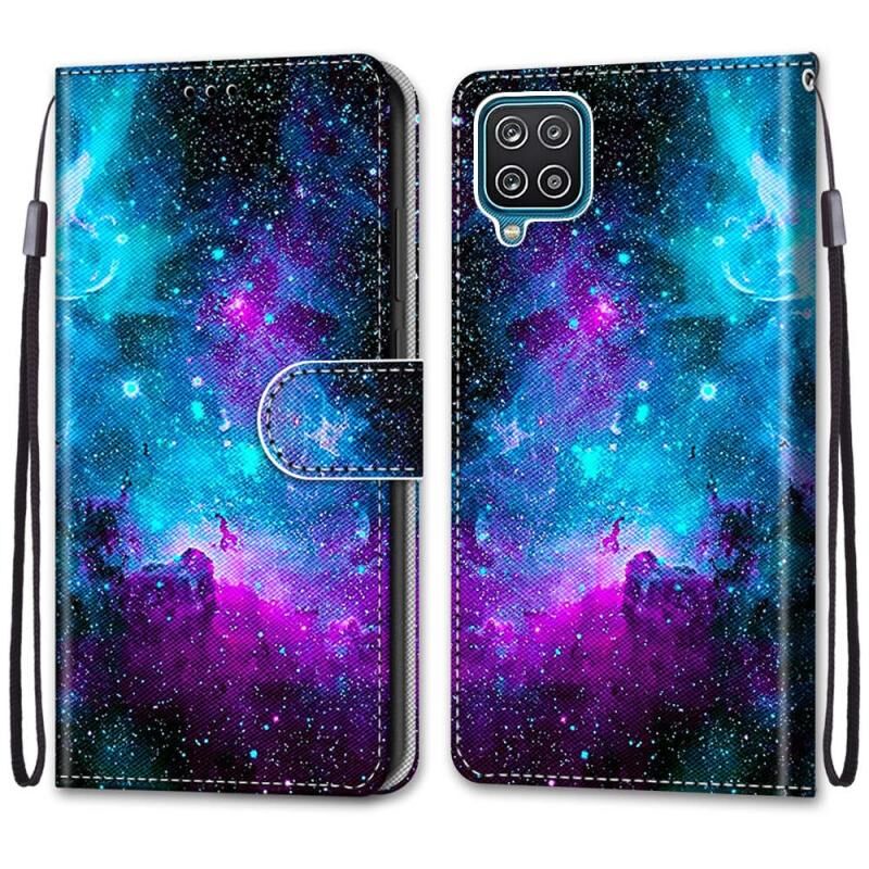 Θήκη για Samsung Galaxy A12 / M12 με πολύχρωμο σχέδιο, υφή σταυρού, οριζόντια, από δερματίνη PU με βάση στήριξης & θήκες για κάρτες & πορτοφόλι & κορδόνι (Πράσινο Λεμόνι)