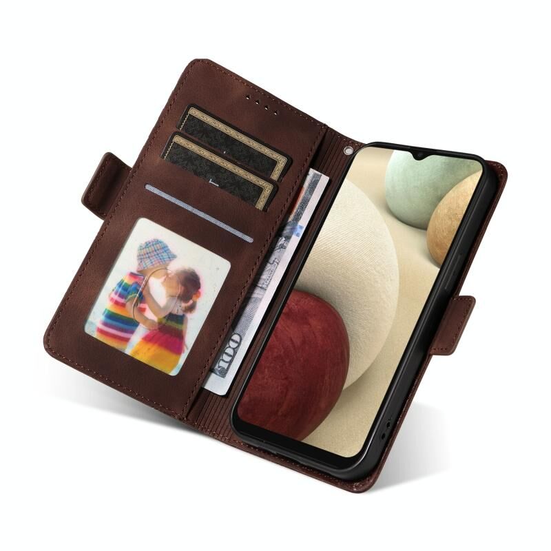 Για Samsung Galaxy A12 / M12 / F12 5G ανάγλυφο ρόμβος αστέρι αστερίας δερμάτινη θήκη τηλεφώνου (Καφέ)