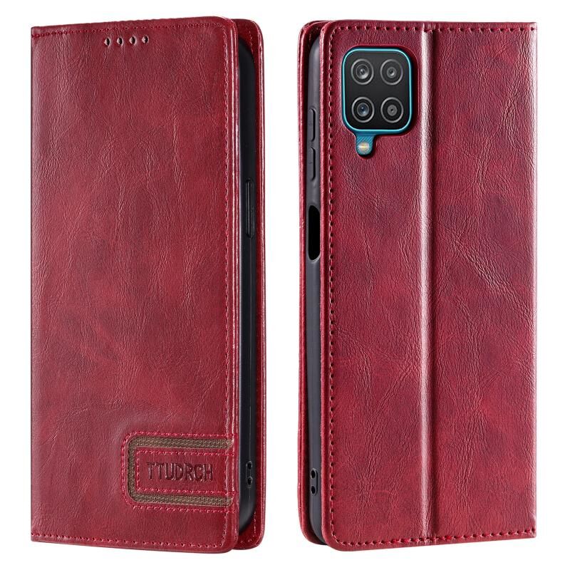 Θήκη τηλεφώνου Samsung Galaxy A12 / M12 / F12 TTUDRCH RFID με μαγνητικό δέρμα και ανάγλυφη υφή (Κόκκινο)