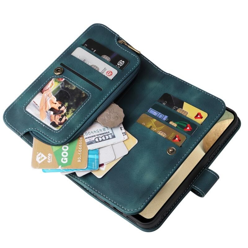 Για Samsung Galaxy A12 / M12 Πολυλειτουργική κάρτα Slot φερμουάρ πορτοφόλι δερμάτινη θήκη τηλεφώνου (μπλε)