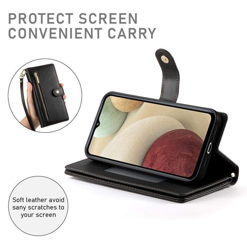Για Samsung Galaxy A12 / M12 Εννέα κάρτα-θυρίδα φερμουάρ πορτοφόλι τσάντα δερμάτινη θήκη τηλεφώνου (μαύρο)