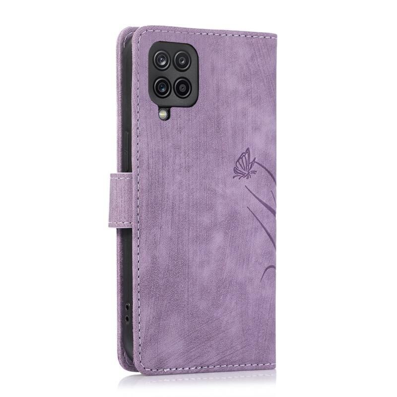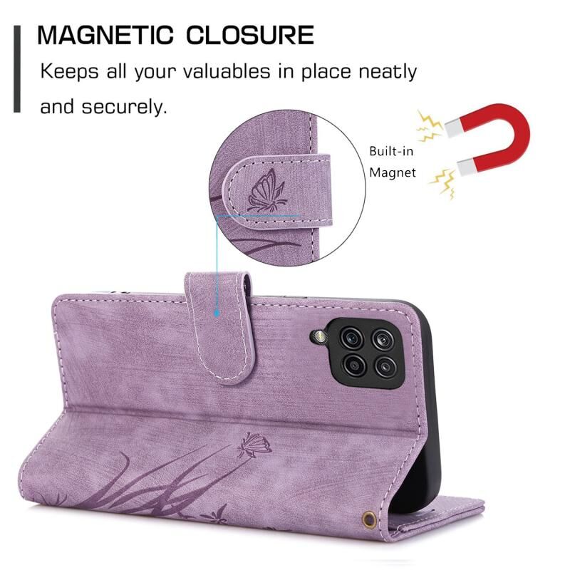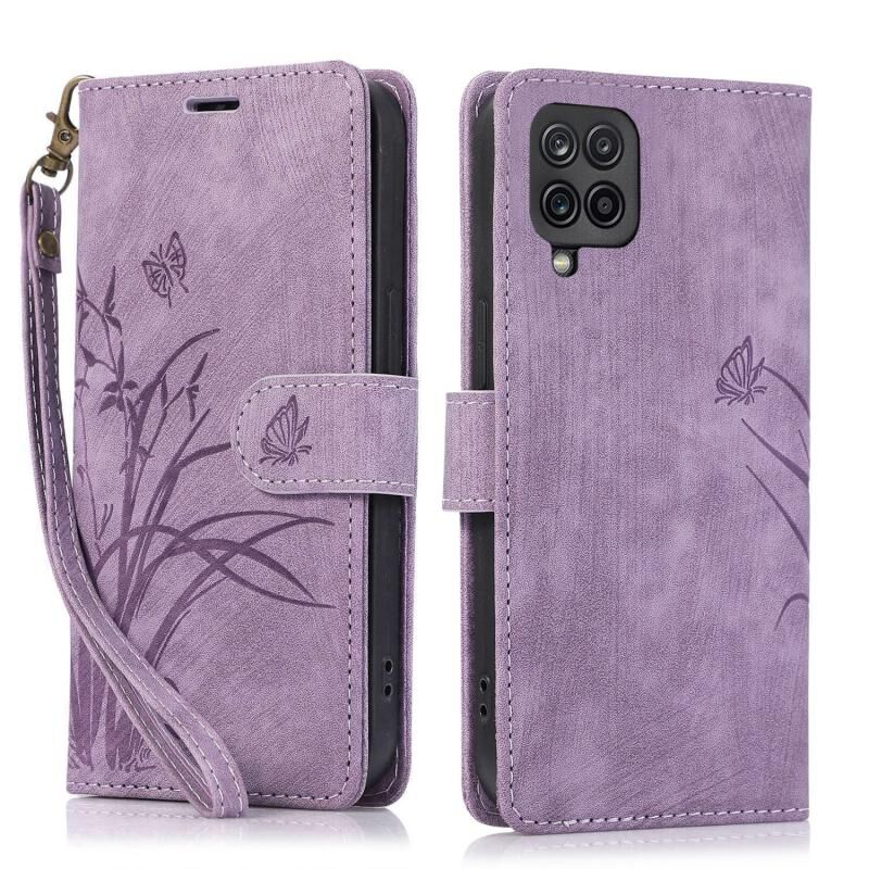 Θήκη τηλεφώνου δερμάτινη ανάγλυφη με σχέδιο ορχιδέας και πεταλούδας για Samsung Galaxy A12 / M12 (Μαύρο)