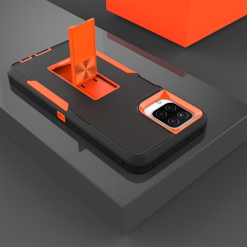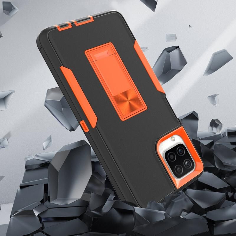 Για Samsung Galaxy A12 Μαγνητική θήκη τηλεφώνου (Μαύρο + Πορτοκαλί)