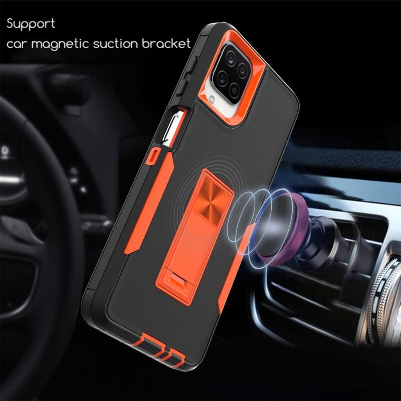 Για Samsung Galaxy A12 Μαγνητική θήκη τηλεφώνου (σκούρο γκρι + πράσινο)