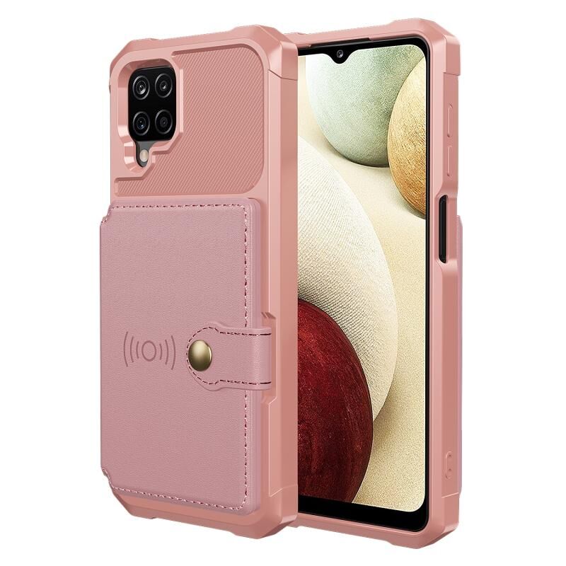 Για Samsung Galaxy A12 Μαγνητικό πορτοφόλι κάρτα τσάντα τσάντα δερμάτινη θήκη τηλεφώνου (Rose Gold)