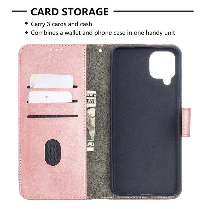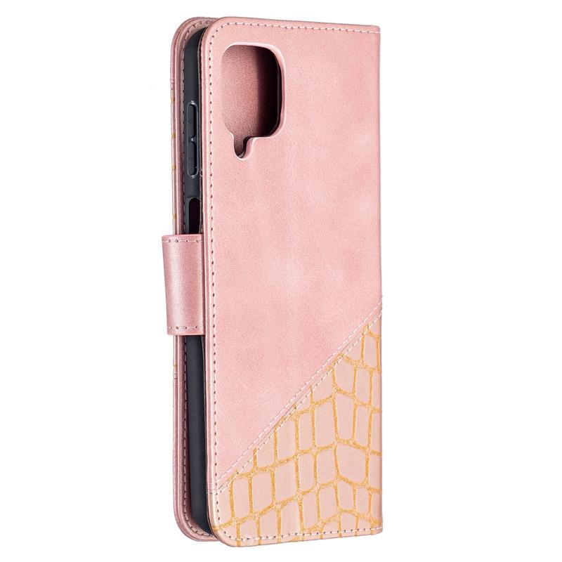 Θήκη Samsung Galaxy A12, Οριζόντια, Δερμάτινη PU με Υφή Κροκόδειλου, σε Αντίστοιχο Χρώμα, με Πορτοφόλι, Θήκη & Θήκες Καρτών (Ροζ χρυσός)
