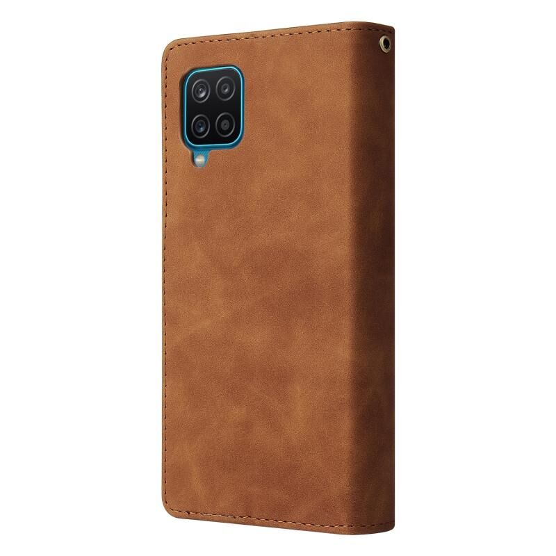 Για Samsung Galaxy A12 Πολυλειτουργικό παγωμένο φερμουάρ πορτοφόλι δερμάτινη θήκη τηλεφώνου (Καφέ)