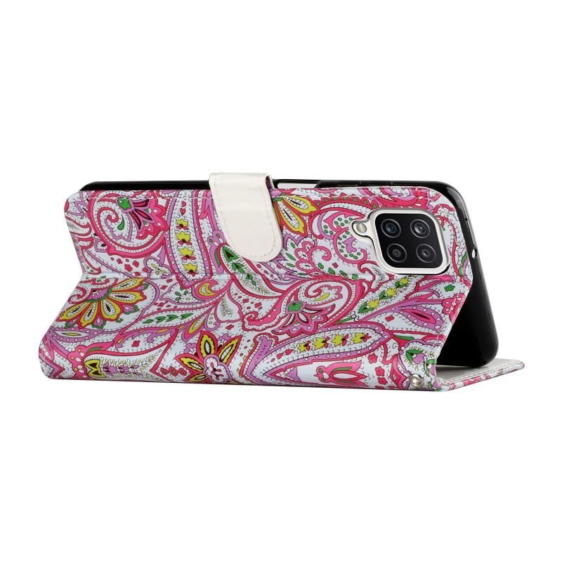 Θήκη Samsung Galaxy A12 με ανάγλυφο σχέδιο λαδιού, πολύχρωμη, οριζόντια, από δερματίνη PU με βάση στήριξης & θήκες για κάρτες & πορτοφόλι (Λουλούδι Πιπεριού)