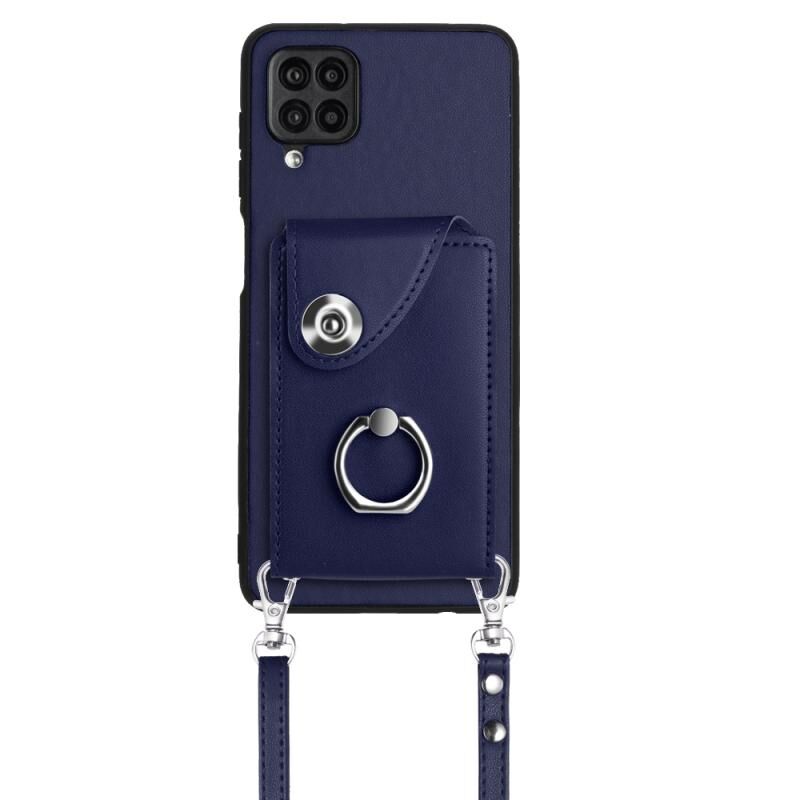 Για Samsung Galaxy A12 Οργανική κάρτα τσάντα τσάντα δαχτυλίδι κάτοχος υπόθεση τηλεφώνου με μακρύ κορδόνι (μπλε)