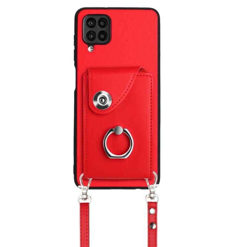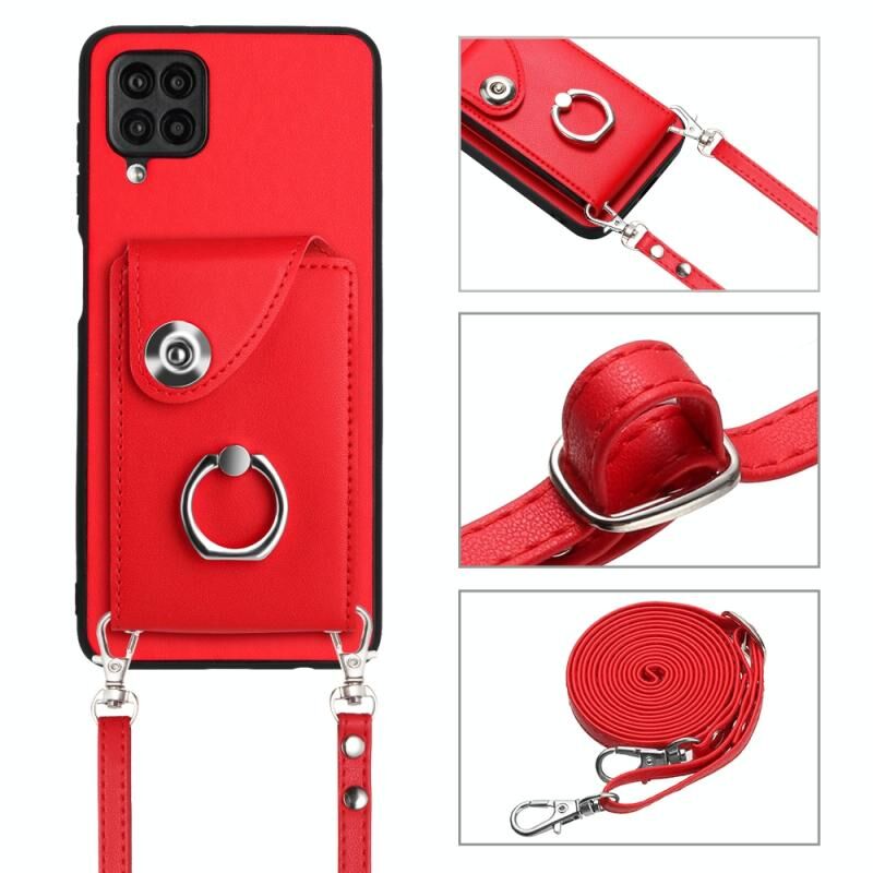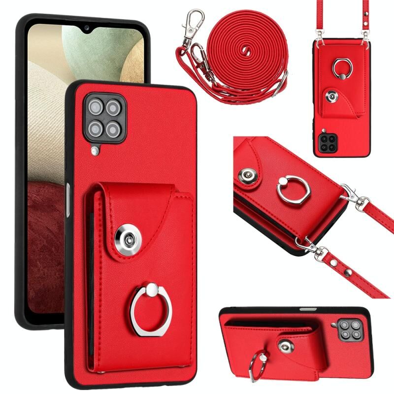 Για Samsung Galaxy A12 Οργανική κάρτα τσάντα τσάντα δαχτυλίδι κάτοχος υπόθεση τηλεφώνου με μακρύ κορδόνι (κόκκινο)