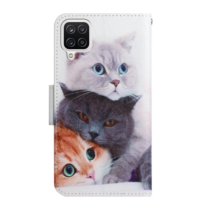 Θήκη Samsung Galaxy A12 από Δέρμα με Οριζόντιο Άνοιγμα, Βαμμένο Μοτίβο, με Θήκη & Υποδοχή Κάρτας & Πορτοφόλι (Τρία Γατάκια)