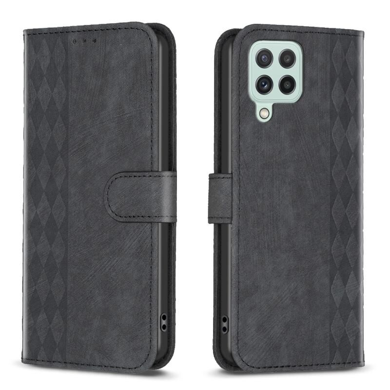 Για Samsung Galaxy A12 καρό ανάγλυφη δερμάτινη θήκη τηλεφώνου (Μαύρο)