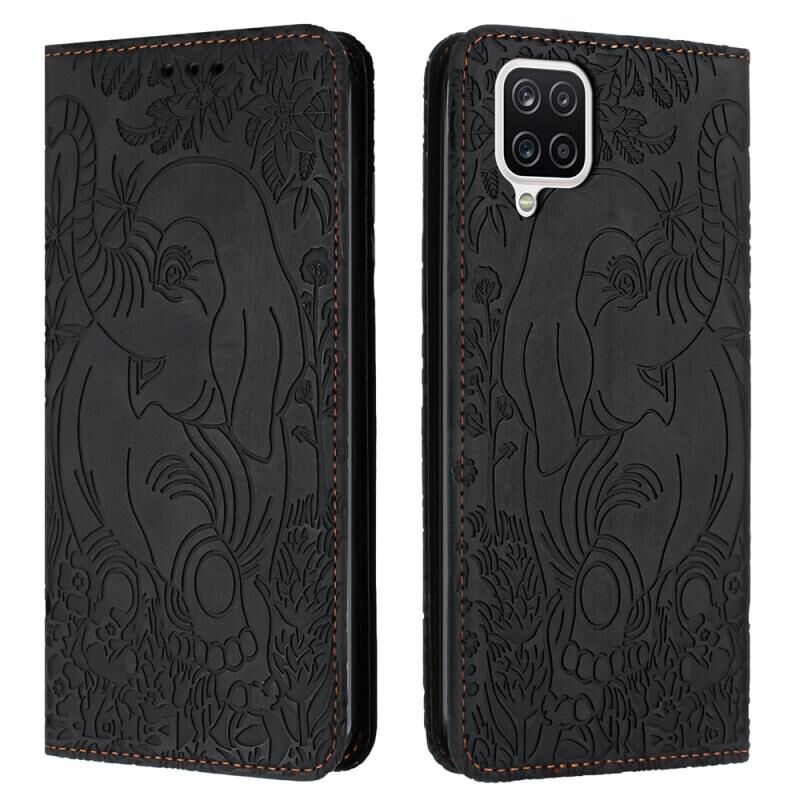 Θήκη τηλεφώνου Samsung Galaxy A12 Retro Elephant Embossed Leather (Μπλε)