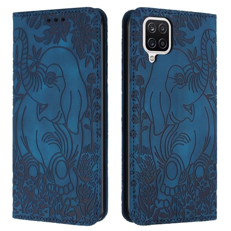 Θήκη τηλεφώνου Samsung Galaxy A12 Retro Elephant Embossed Leather (Μπλε)