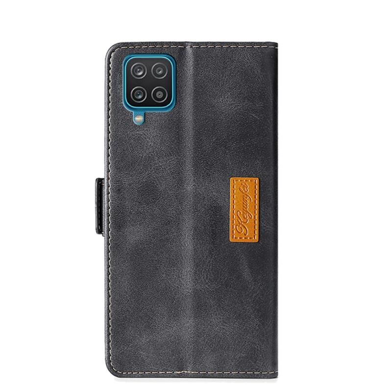 Για Samsung Galaxy A12 Ρετρό υφή αντίθεση χρώμα πλευρά πόρπη οριζόντια Flip δερμάτινη θήκη με υποδοχή & υποδοχές για κάρτες & πορτοφόλι (μαύρο)