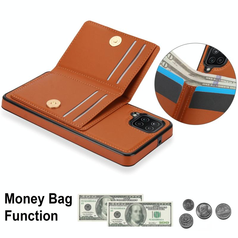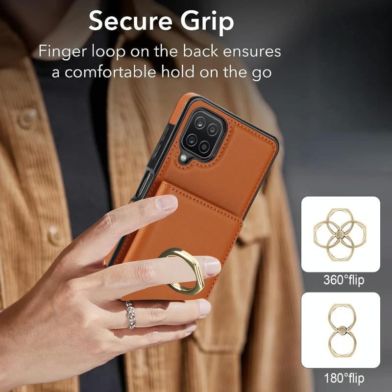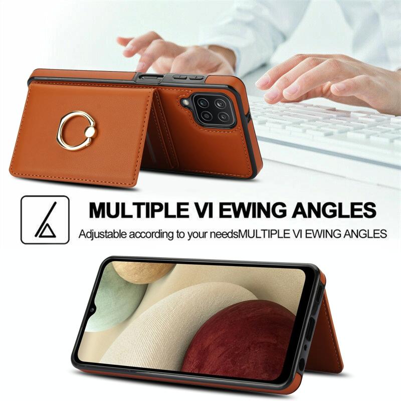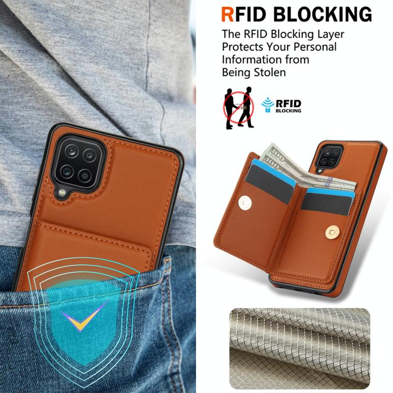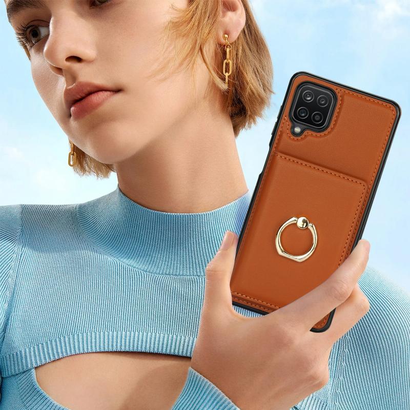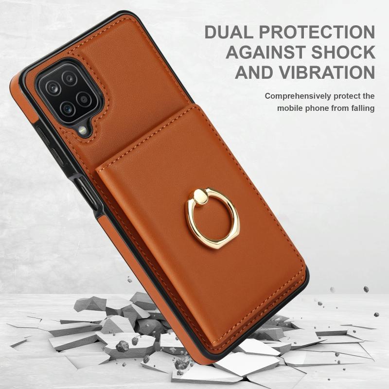 For Samsung Galaxy A12 RFID Anti-theft Card Ring Holder Phone Case(Brown)