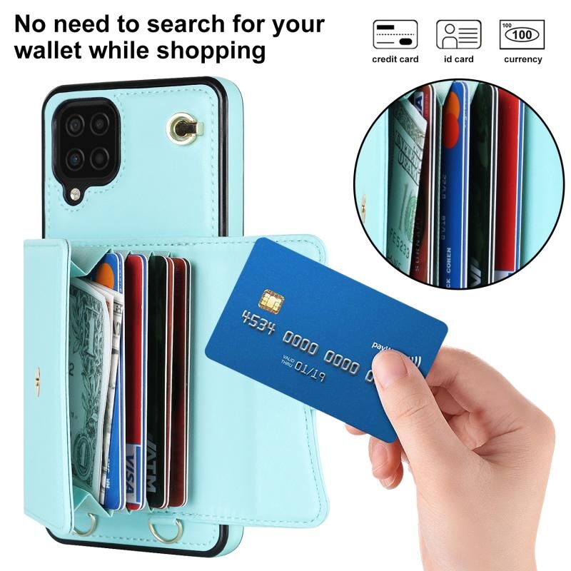 Για Samsung Galaxy A12 RFID Slot κάρτα δερμάτινη θήκη τηλεφώνου με μακρύ κορδόνι (Μέντας πράσινο)