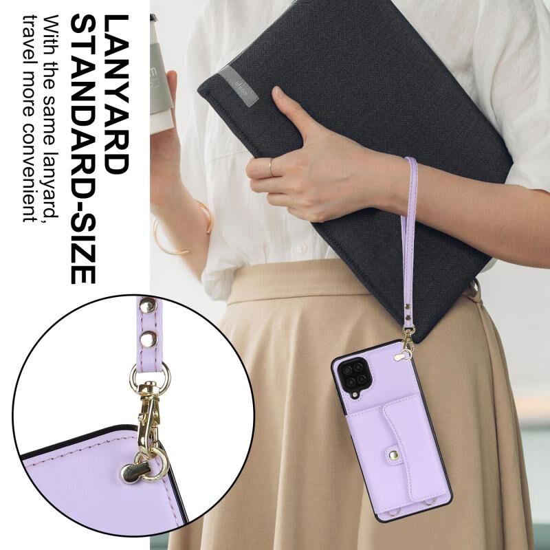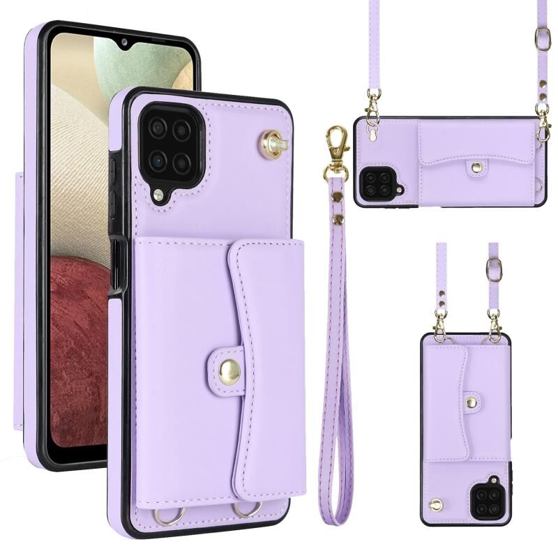 Για Samsung Galaxy A12 RFID Slot κάρτα δερμάτινη θήκη τηλεφώνου με μακρύ κορδόνι (Μωβ)