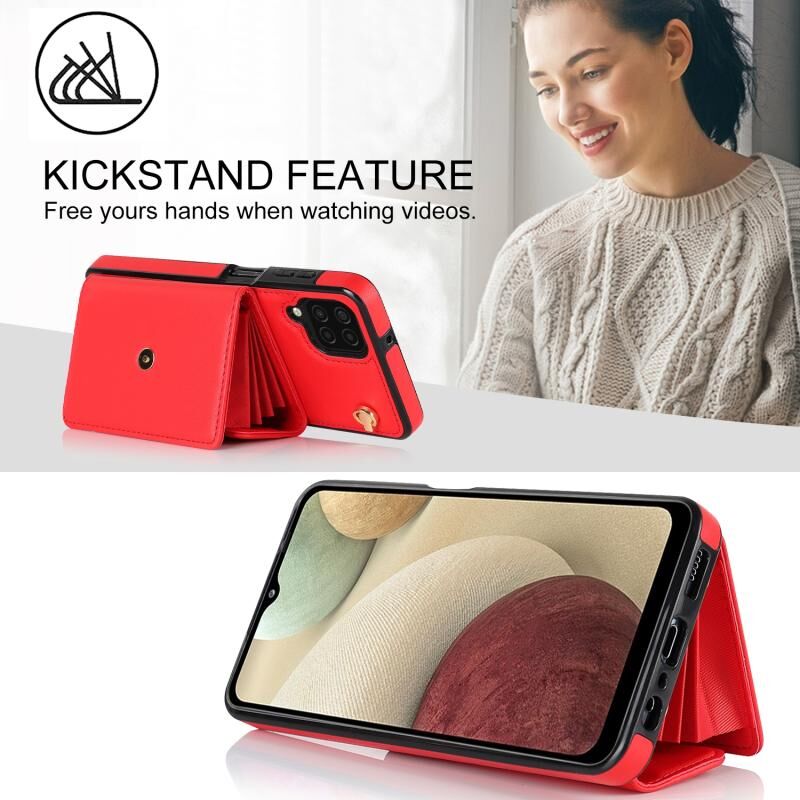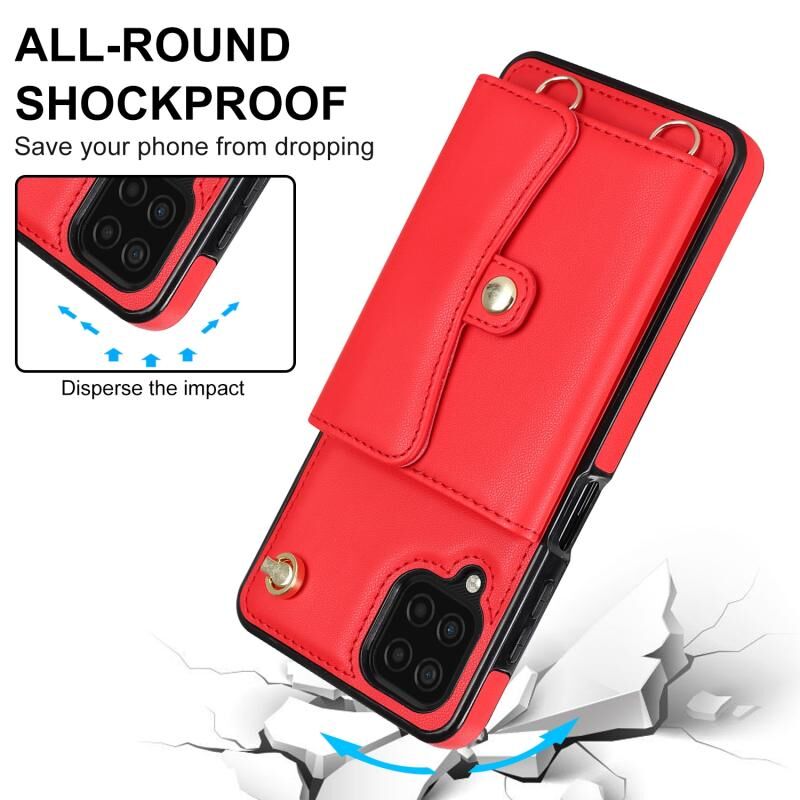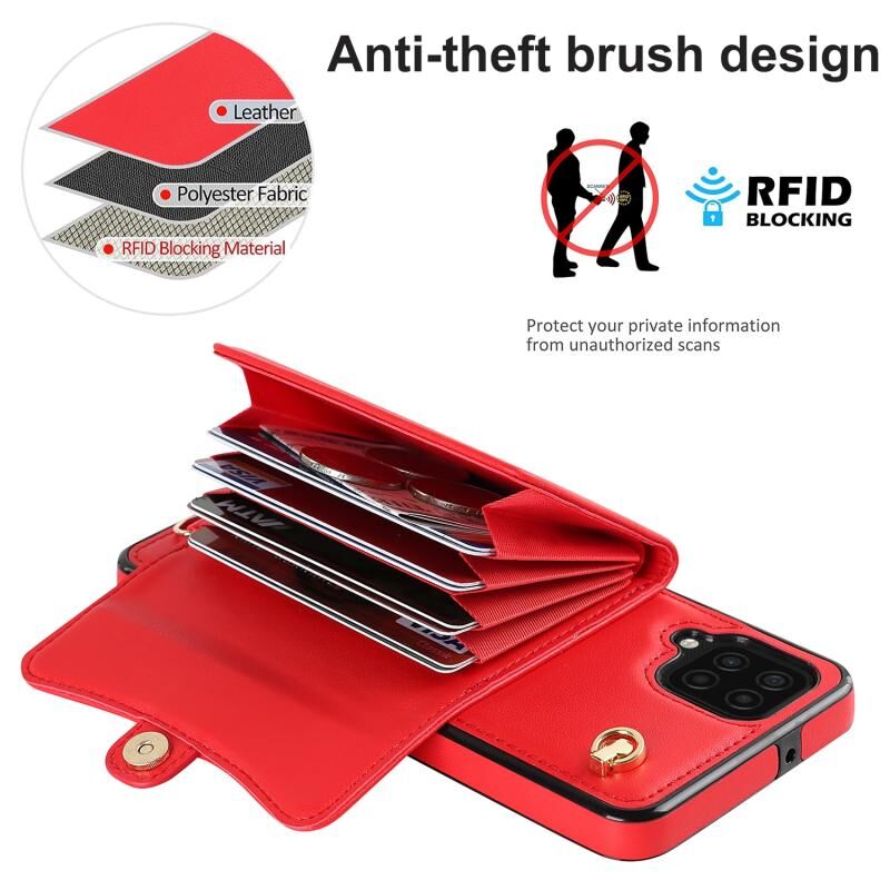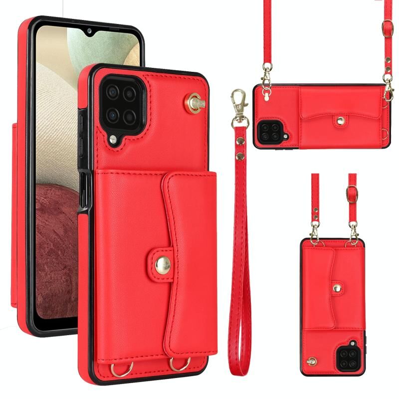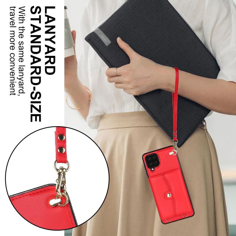 Για Samsung Galaxy A12 RFID Slot κάρτα δερμάτινη θήκη τηλεφώνου με μακρύ κορδόνι (Κόκκινο)